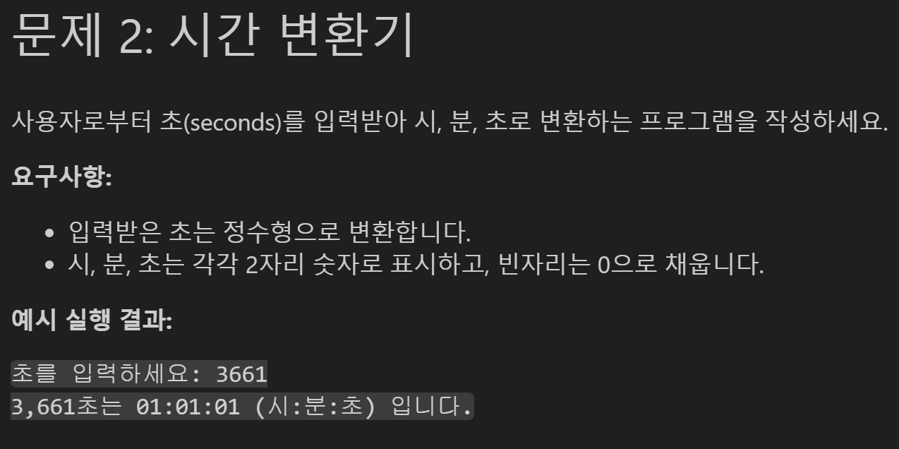 print(f"초를 입력하세요: {sec}")