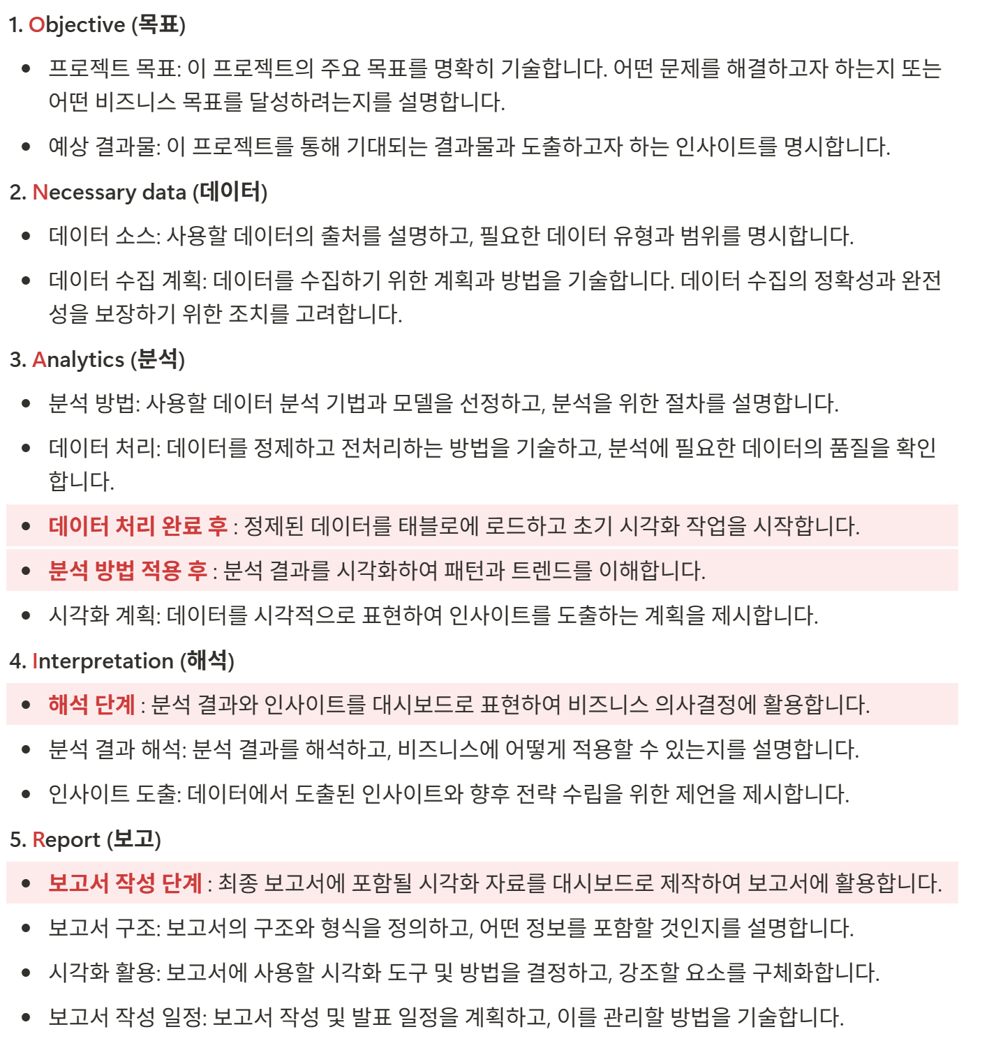 팀원분 덕분에 이 분석 절차를 다시 생각할 수 있었고, 이번 ppt 및 발표절차를 이것을 바탕으로 준비하는 것을 상기해 볼 수 있었다.