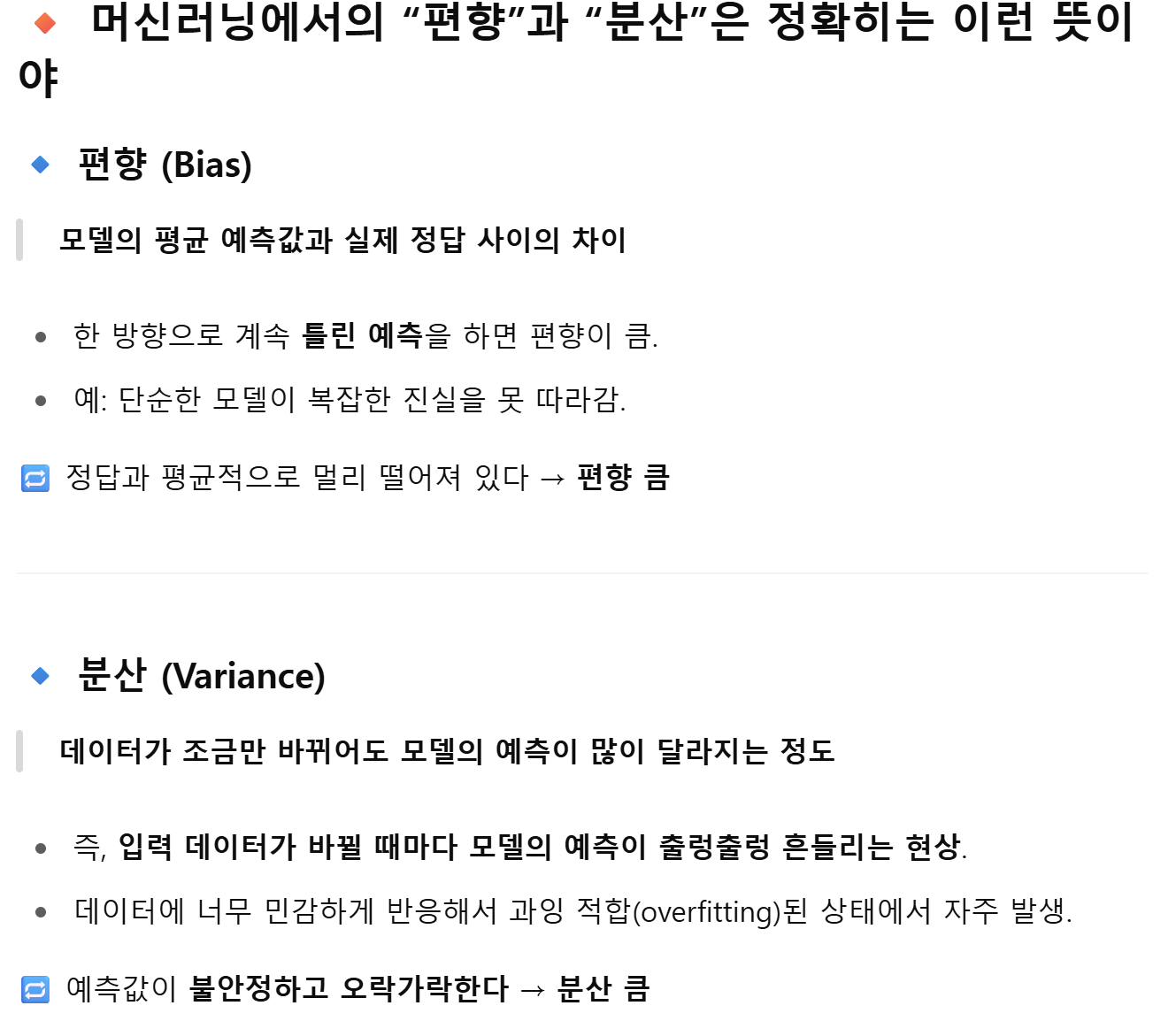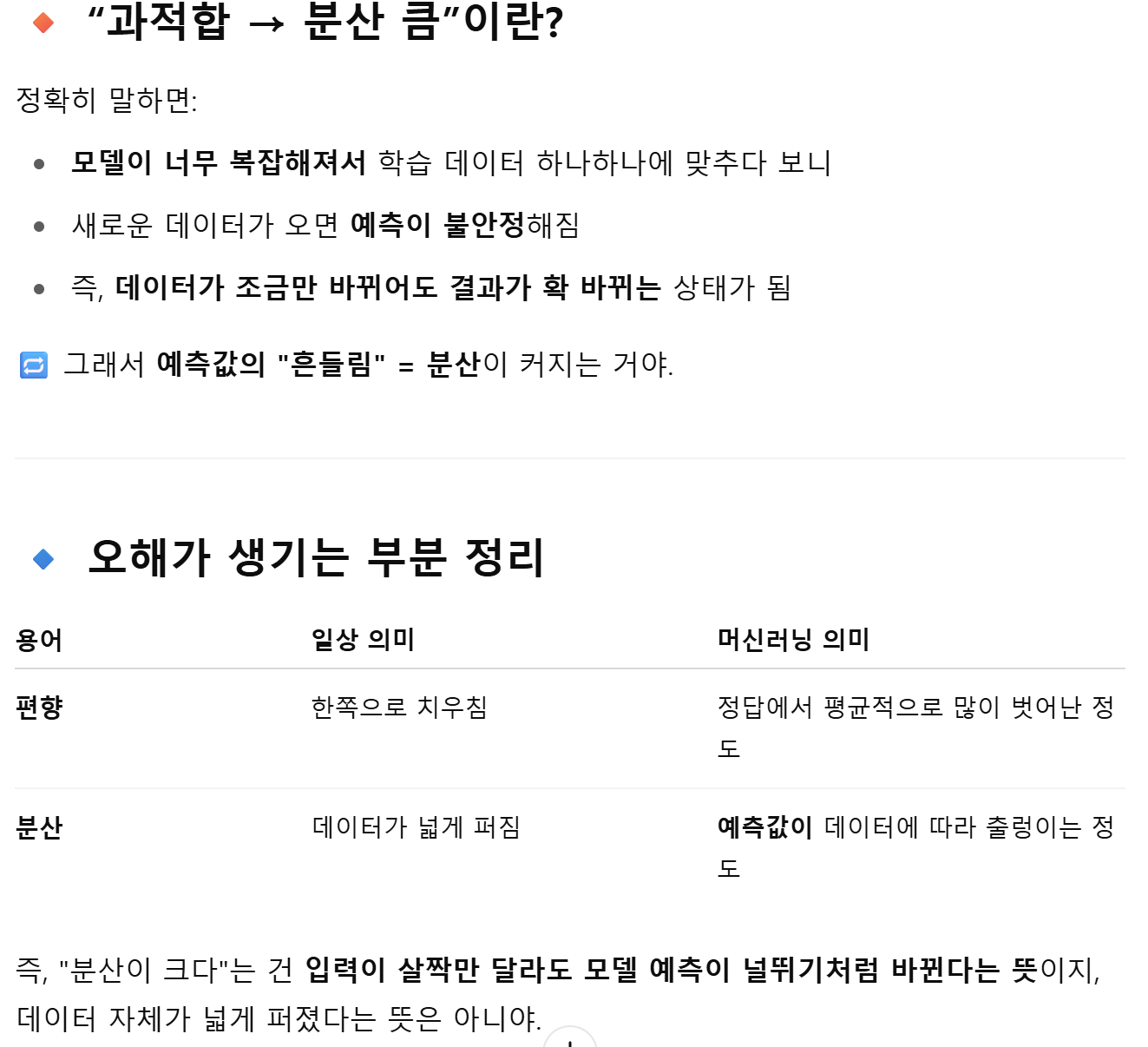 “분산이 크다”는 건 모델이 너무 민감해서 예측이 불안정하다는 뜻,