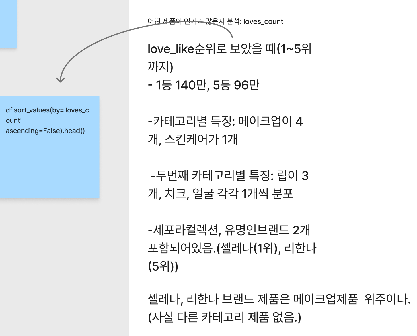목표: 어떤 제품이 인기가 많은지 분석: loves_count를 중심으로 해보았다.