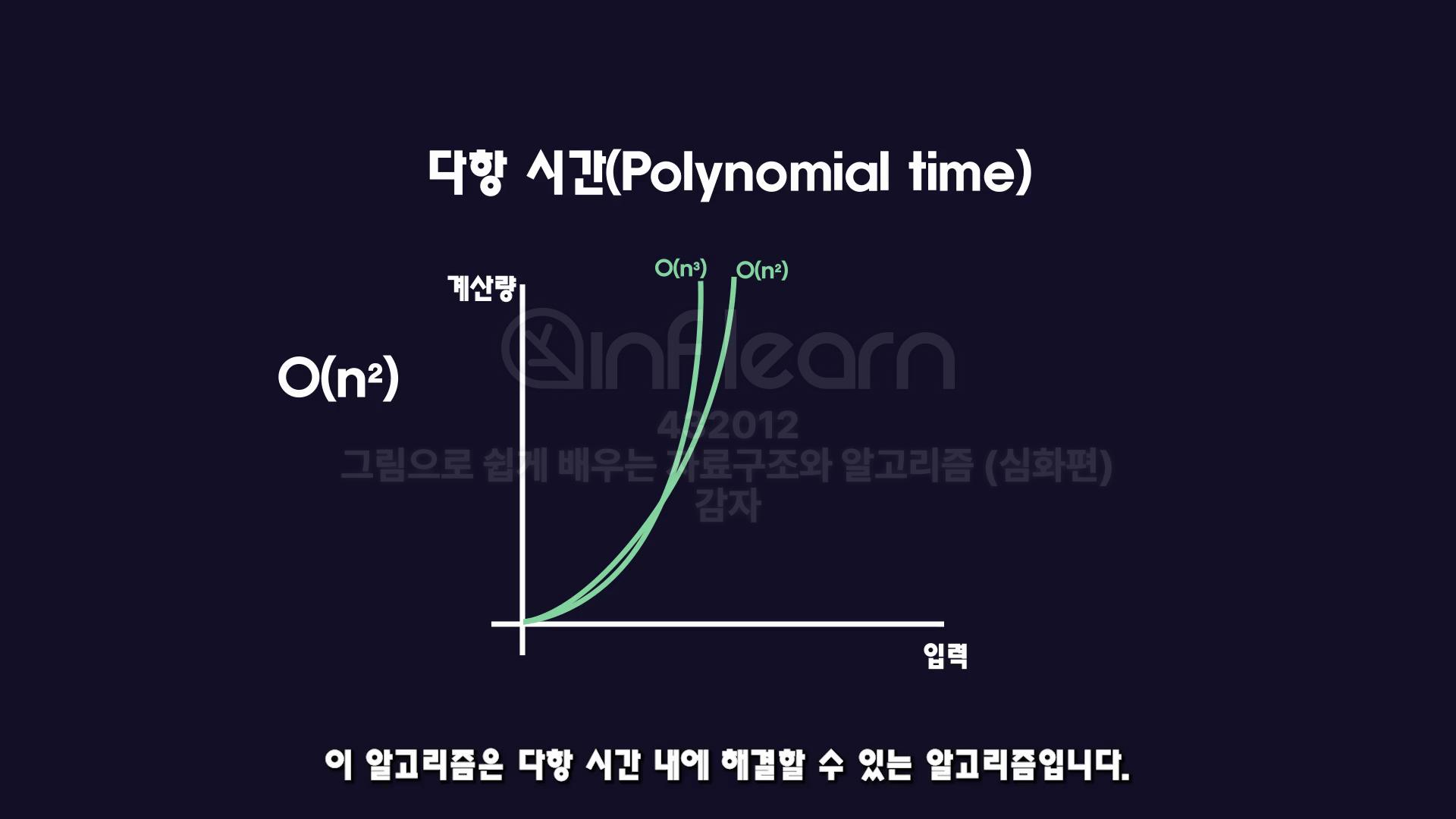 - 만약, 어떤 알고리즘의 성능이 O(x²) 이라면? 다항시간내에 답을 구할 수 있는 알고리즘 이라는 것.