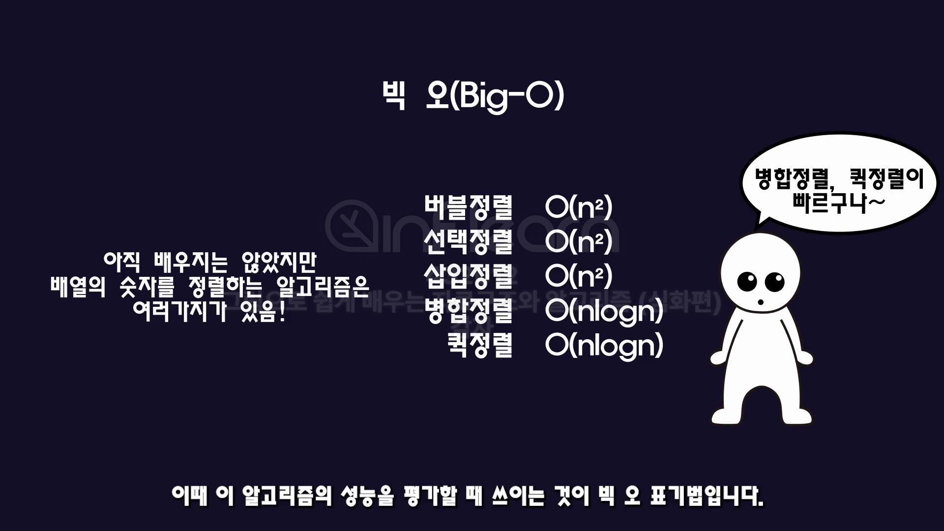 - 알고리즘의 성능을 평가하는데, "빅 오 " 표기법을 씀
