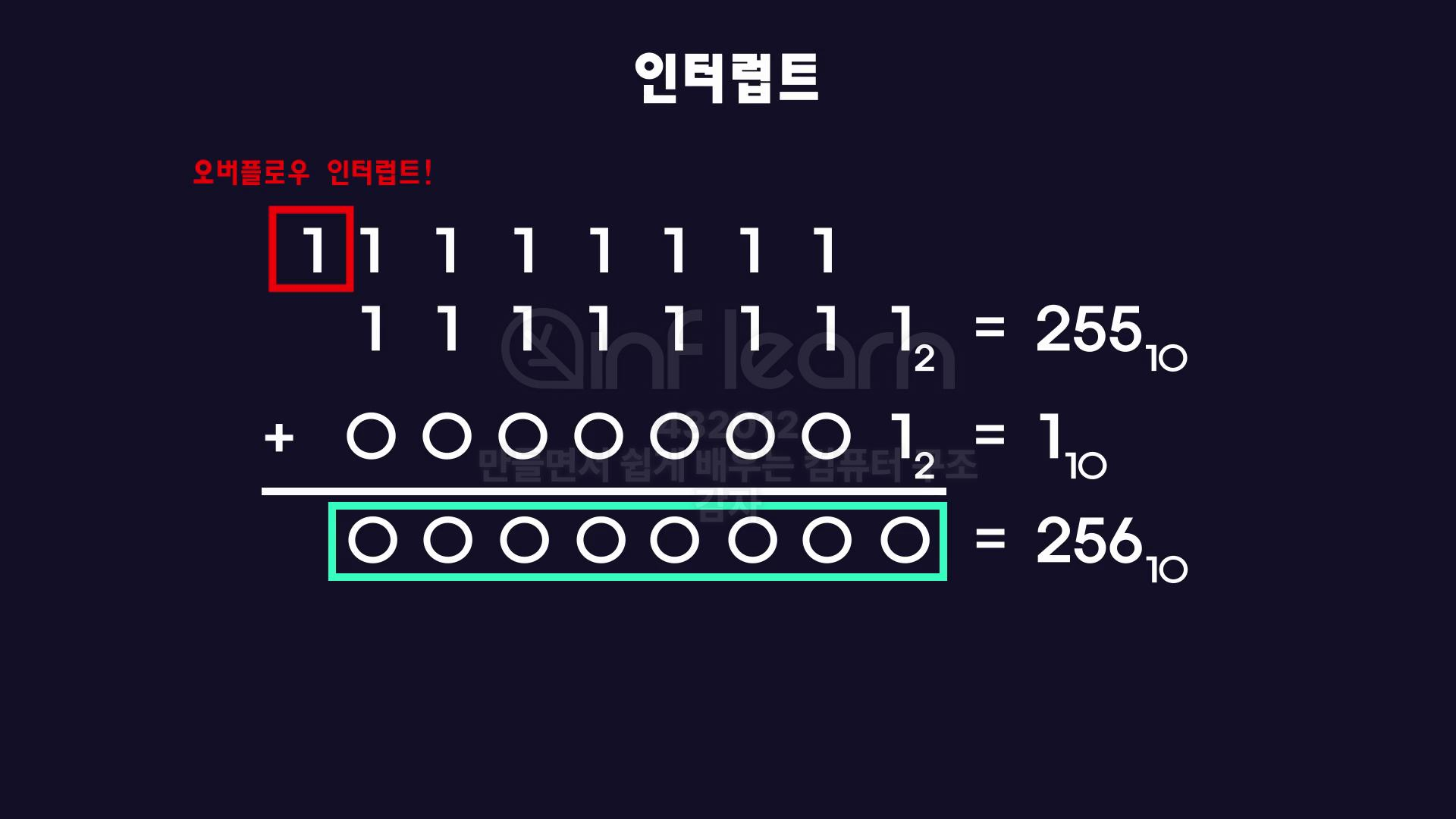- 개념 : 오버플로우가 발생하면, 진행 중인 동작을 멈추고 "인터럽트"처리를 하도록 함.