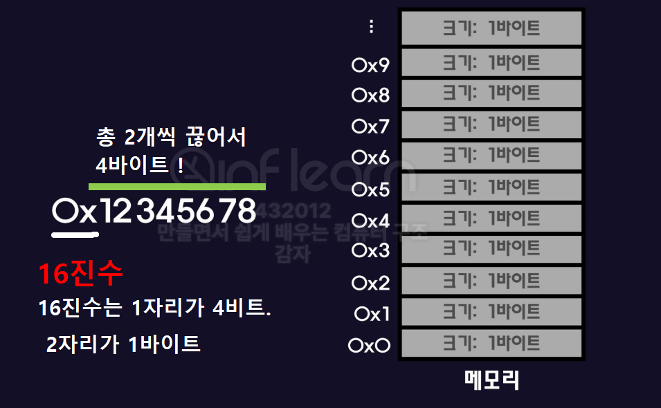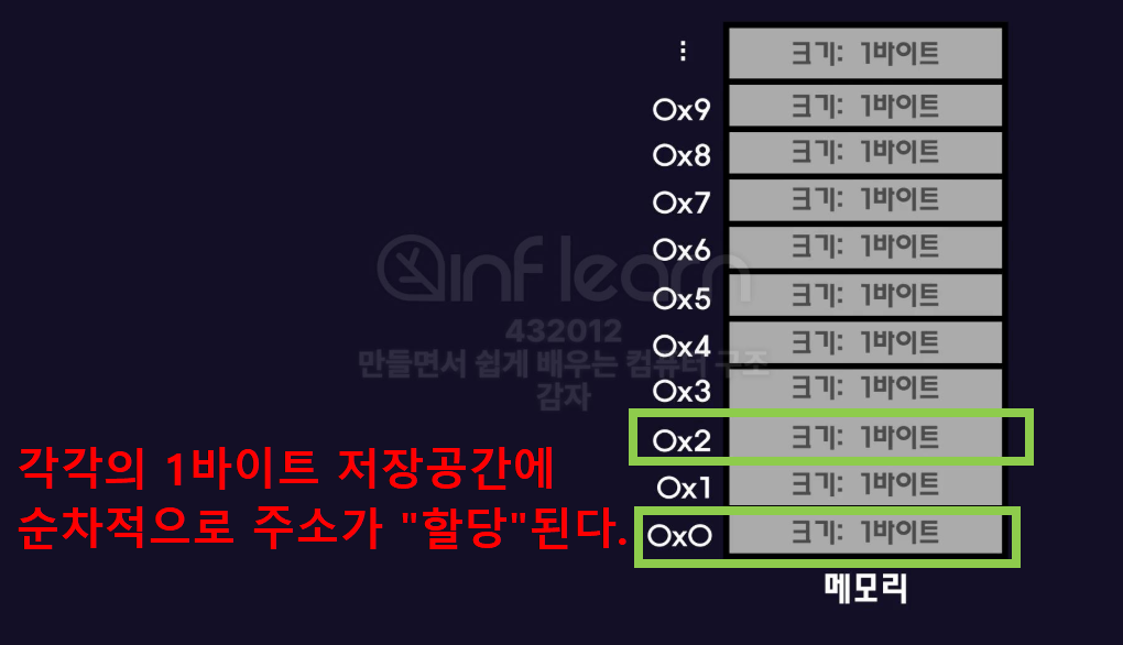 1바이트로 나눠진 메모리가 있다고 가정해보자.