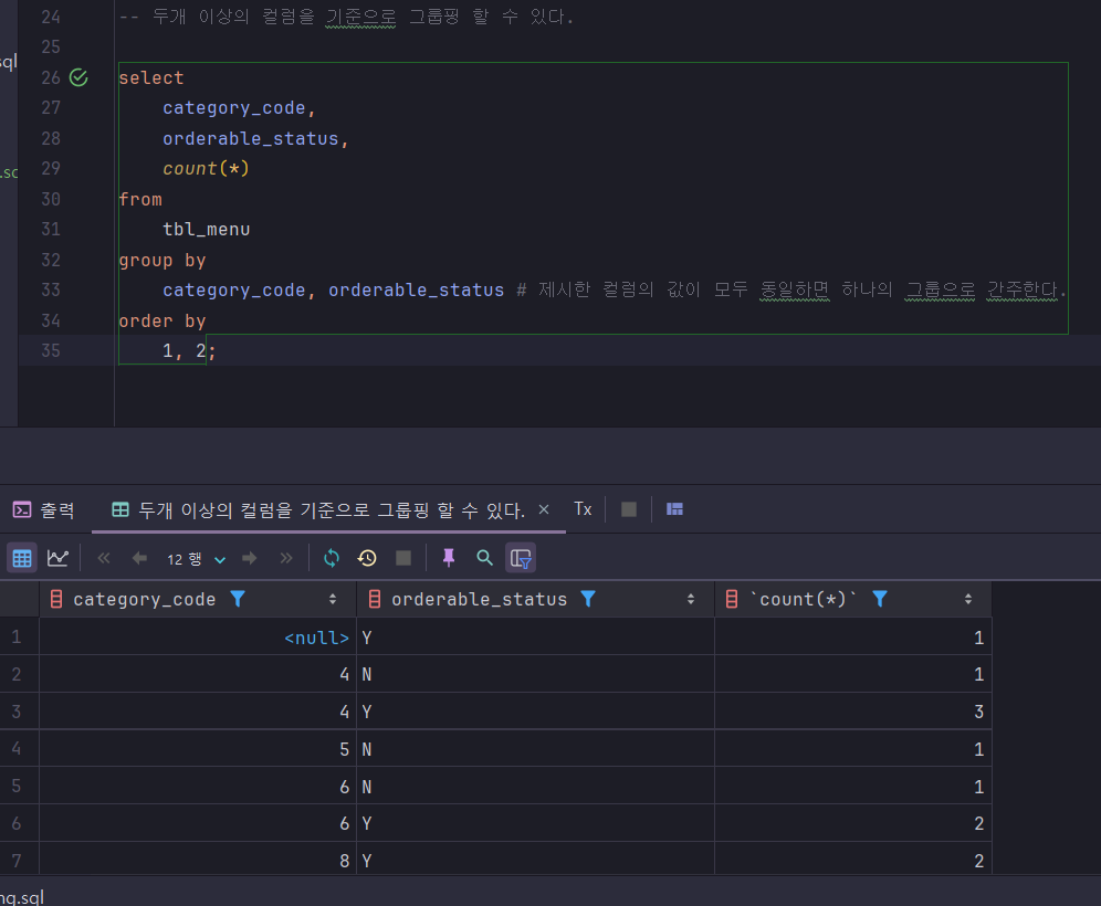 - 두 개 이상의 컬럼을 기준으로 그룹핑 할 수 있다.