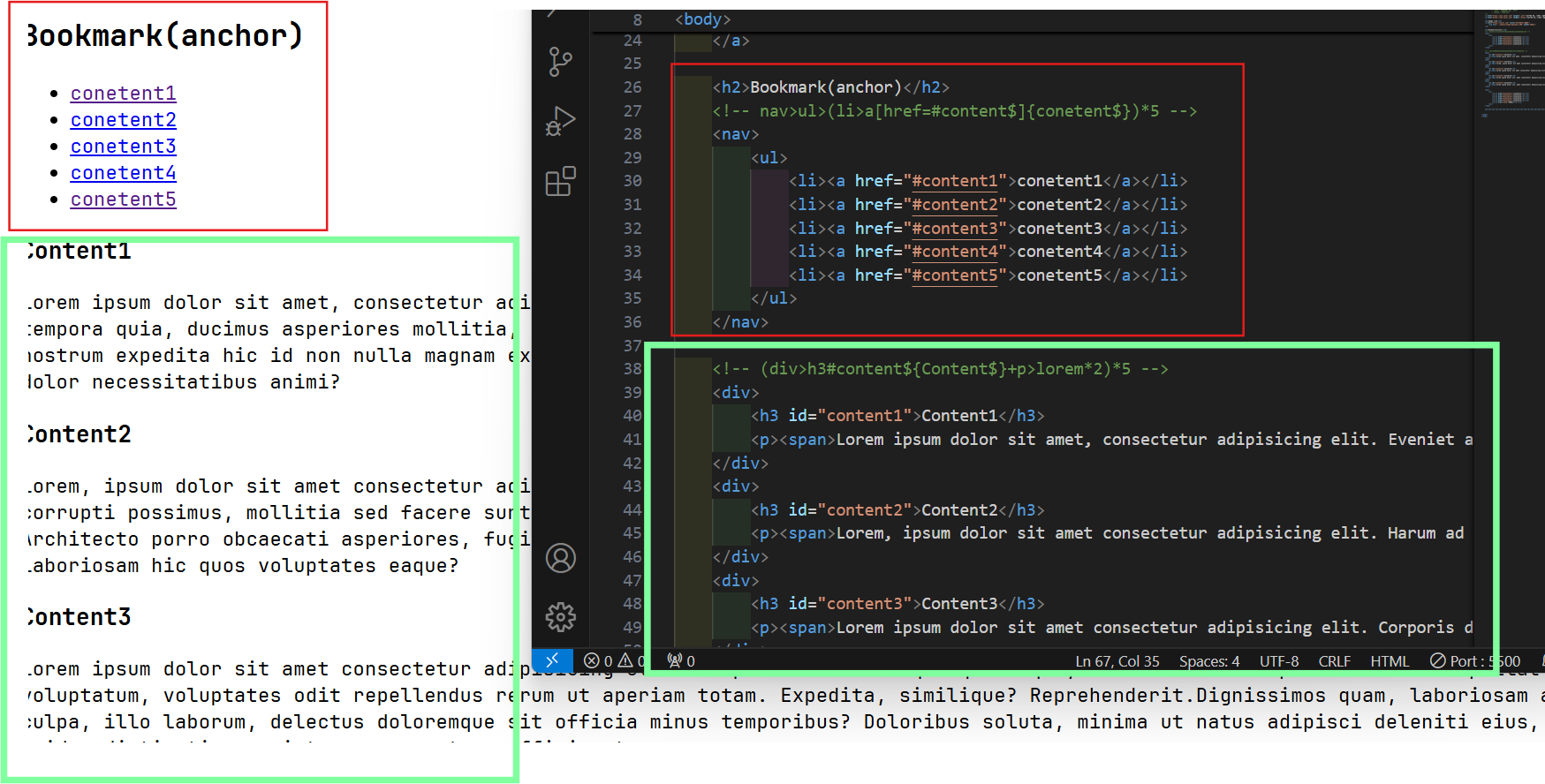 nav>ul>(li>a[href=#content$]{conetent$})*5