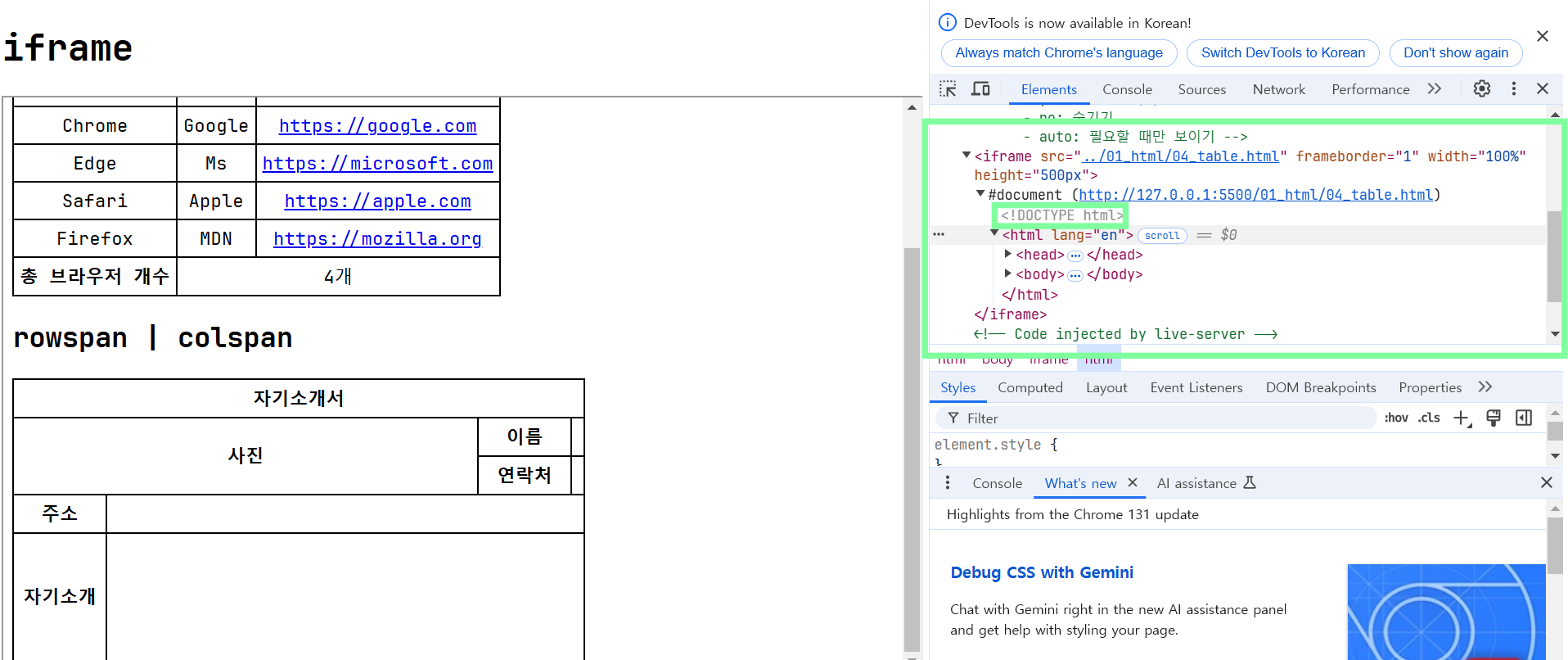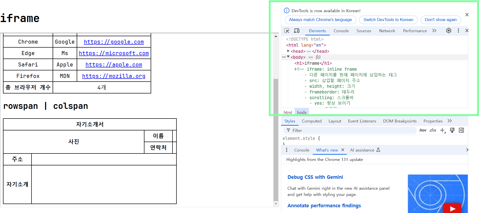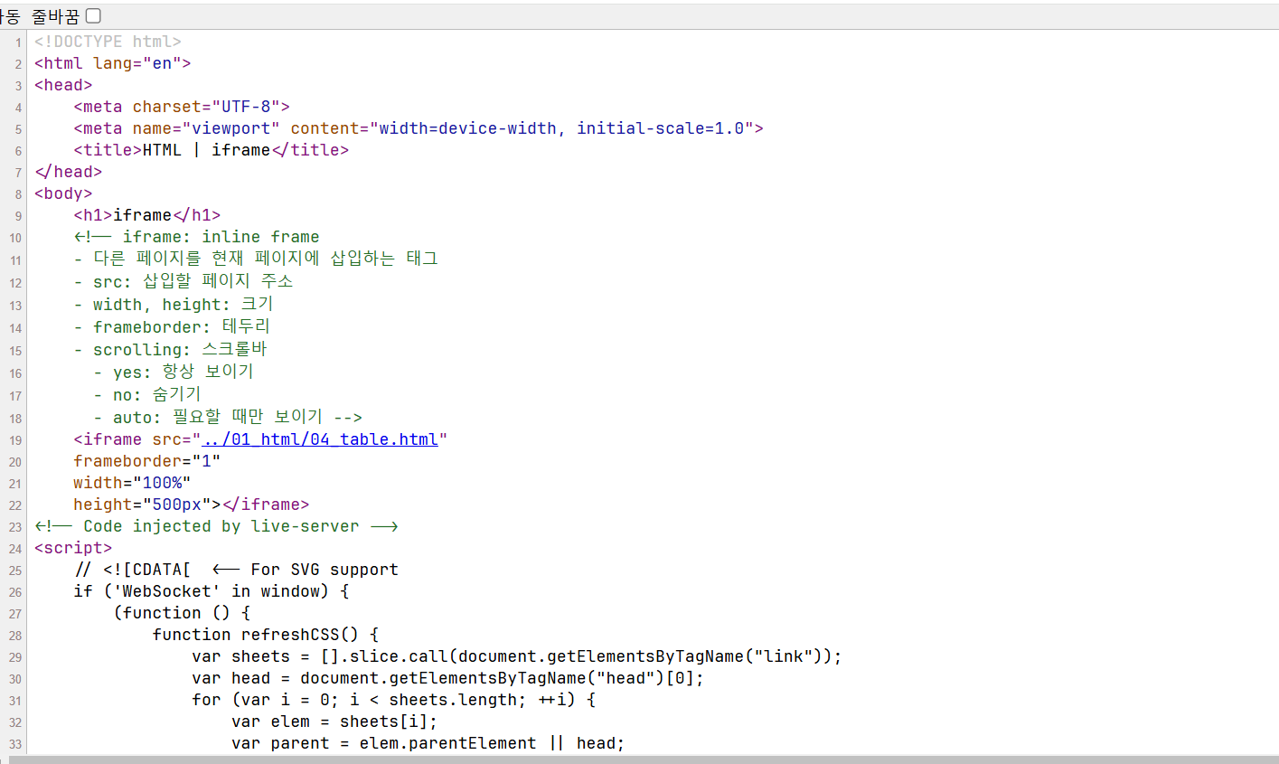 이 페이지 안에 또 있는 걸 볼 수 있다. 페이지 내에 페이지 넣을 때 쓰는 iframe