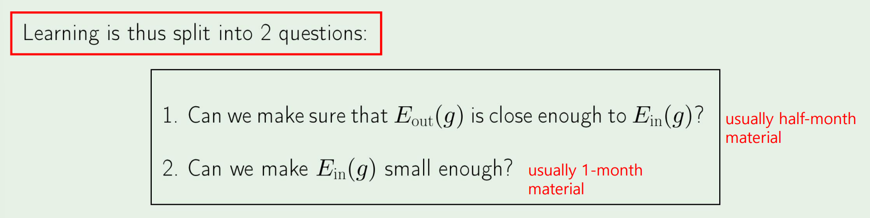 우리가 learning을 하려는 것은, Eout(g)≈0을 찾는것이다.
