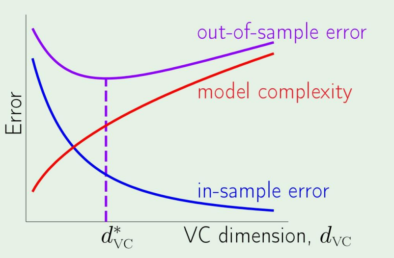 Model complexity가 올라가면 Ein 는 낮아지지만, Eout−Ein은 커지게 된다.