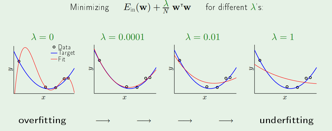 그림을 살펴보면 λ=0일때는 no regulization을 한다는 의미이다.