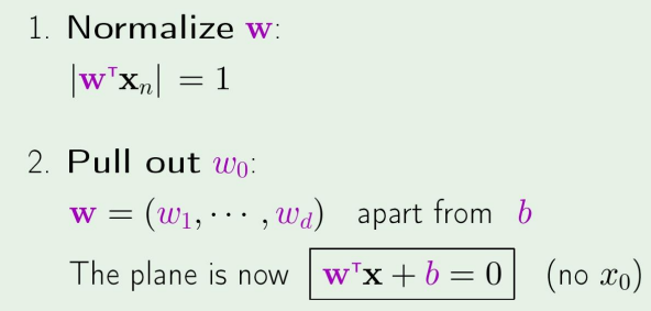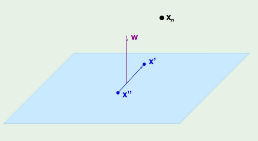 wnom=∥w∥w⇒distance =∣∣∣wnomT(xn−x)∣∣∣
