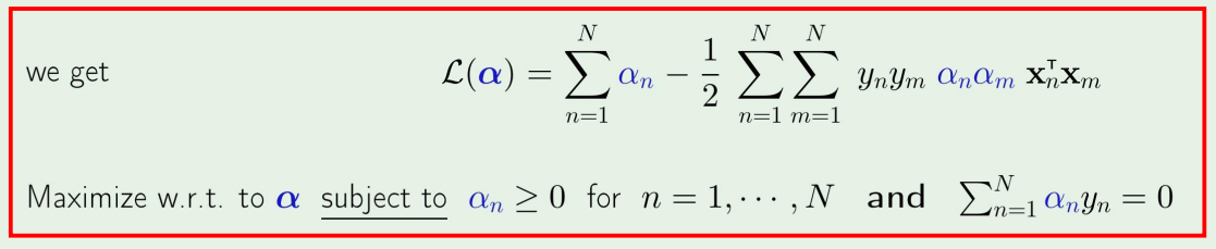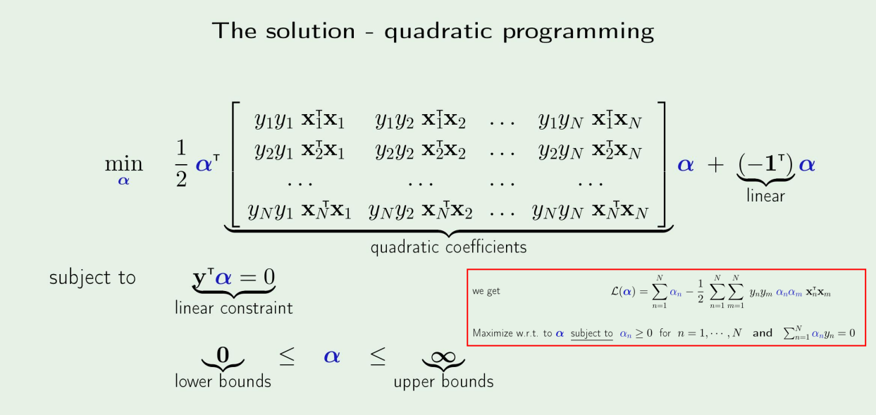 제곱꼴이므로 solution은 quadratic programming으로 풀면된다. →α 를 구할수있음