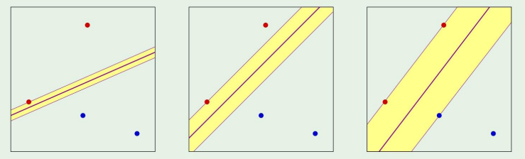 위 식을 풀면 margin의 결정경계를 얻을수있다.