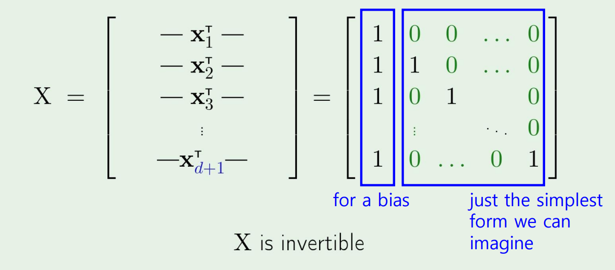 그러면 이 w를 찾을수있고, w=X−1y로 나타낼수있다.