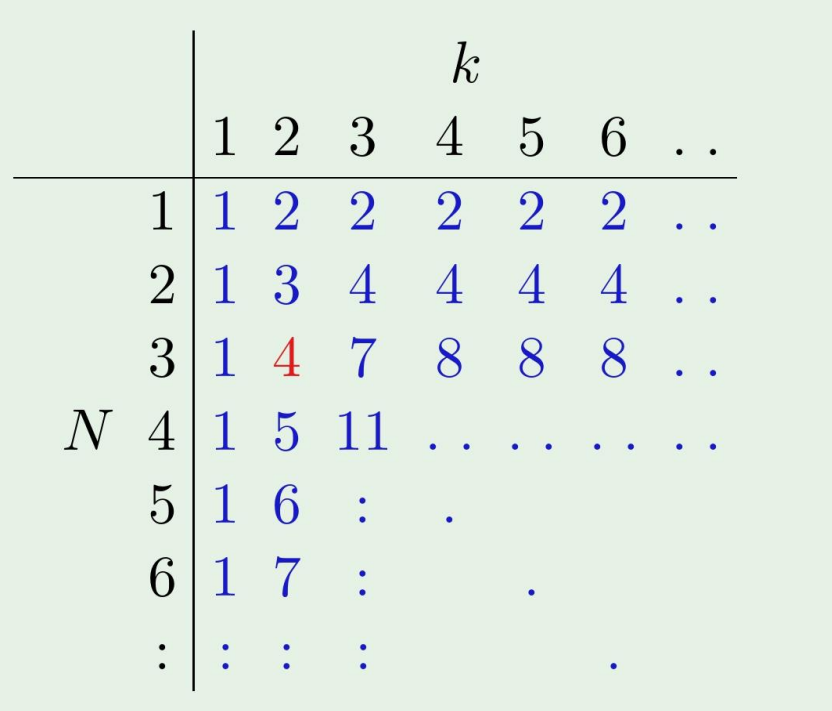 B(N,k)≤B(N−1,k)+B(N−1,k−1)