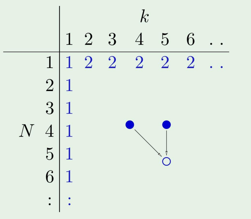 이렇게 나타나는데, 위 식에서 볼수있듯이, k와 k-1을 더하면 그 다음것이 된다.