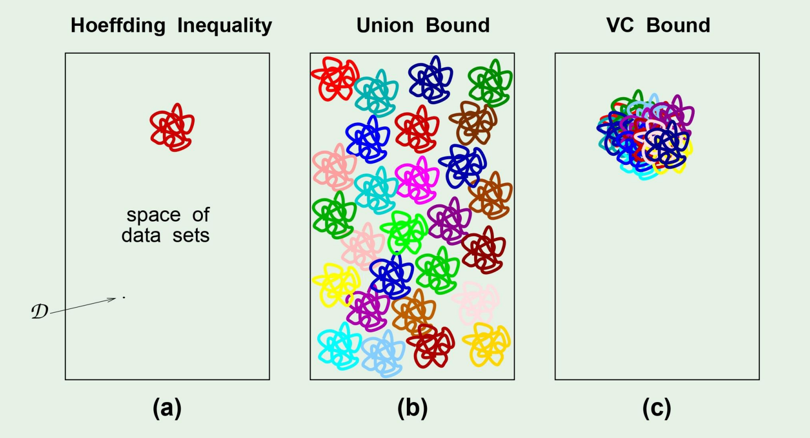 그러면 우리가 bad event를 overlap되게 만들면 좋으므로 (c)처럼 되게 만들고싶은데, 이러한 bound를 Vapnik-Chervonenkis bound라고 한다