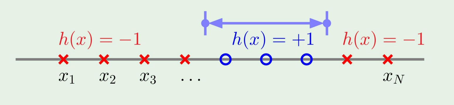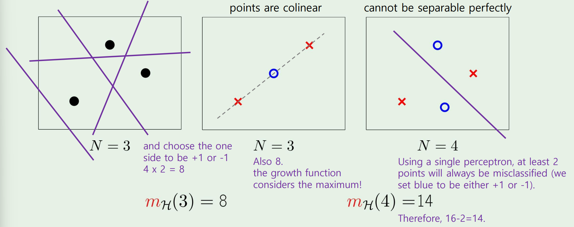 그러나, 이때의 dichotomies ∣H(x1,x2,⋯,xN)∣ is at most 2N