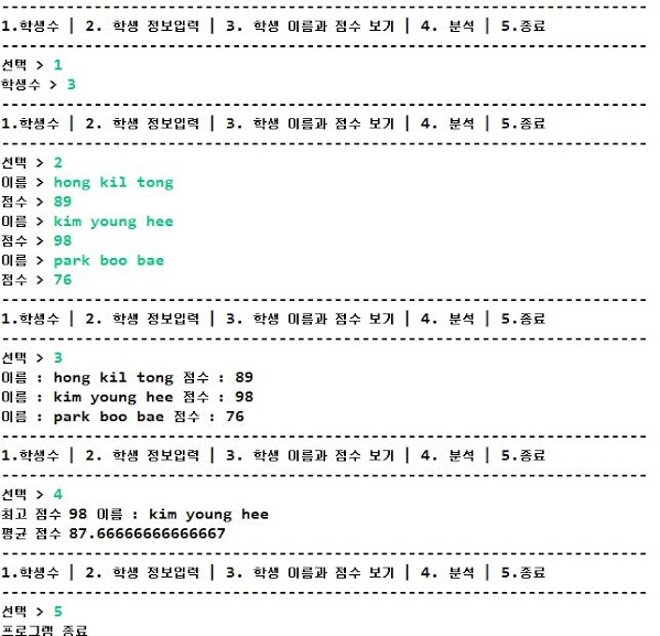 System.out.println(" ํ๊ท ๊ฐ : "+ (double)sum/studentNum);