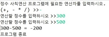 System.out.println("์ ์ ์ฌ์น์ฐ์ฐ ํ๋ก๊ทธ๋จ์ ํ์ํ ์ฐ์ฐ์๋ฅผ ์