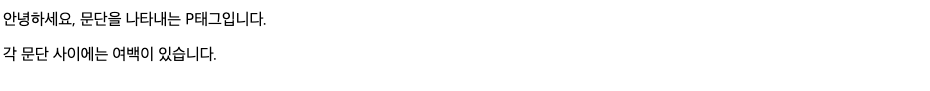 각각의 P 태그로 이루어진 문단 사이에는 여백이 있음