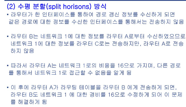 • Split Horizon은 상황을 개선하지만 문제를 해결할 수 없습니다.