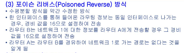 • X에 대한 경로를 학습한 이웃에게 X에 대한 경로를 전송하지 않는 대신, 무한 메트릭이 있는 경로를 사용합니다.