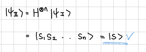 저 식에 Hadamard를 적용하면 바로 우리가 찾던 S가 바로 튀어나온다고 한다.