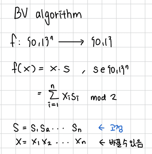 BV 알고리즘은 숨은 string s를 찾는 알고리즘이다.