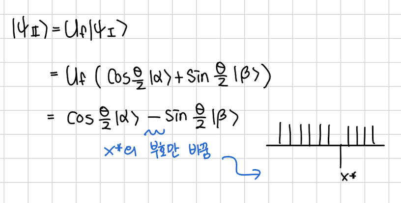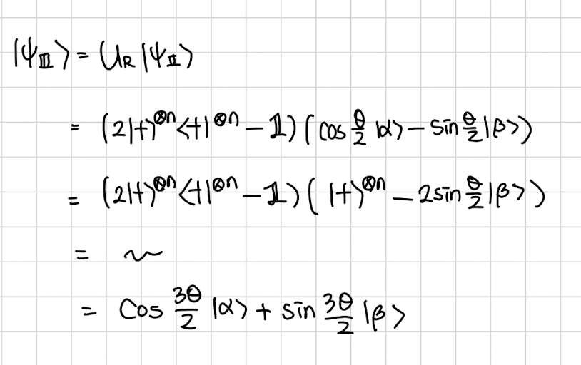 가 \cos\left(\frac{3\theta}{2}\right) \lvert \alpha \rangle + \sin\left(\frac{3\theta}{2}\right) \lvert \beta \rangle$$