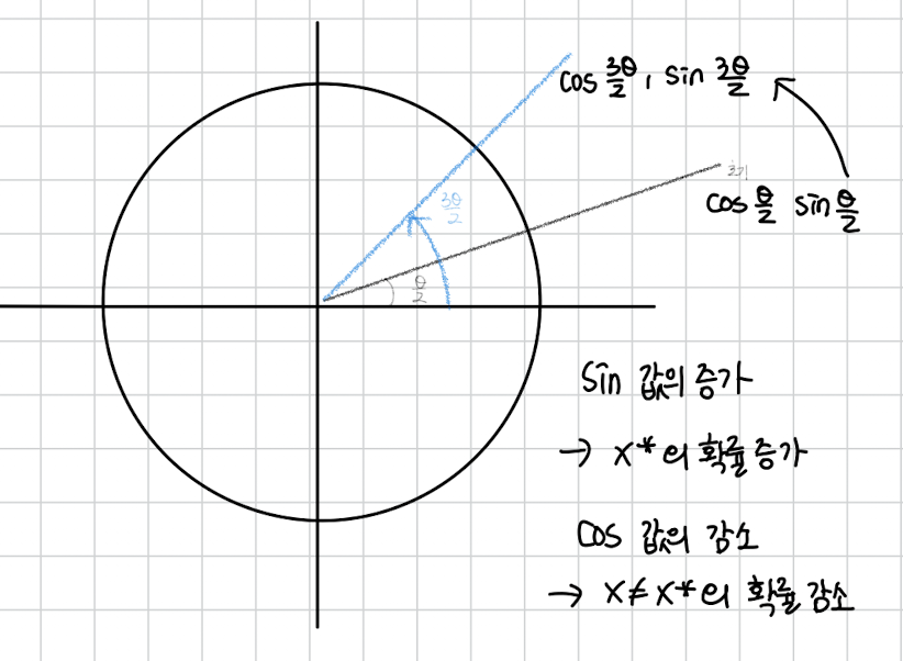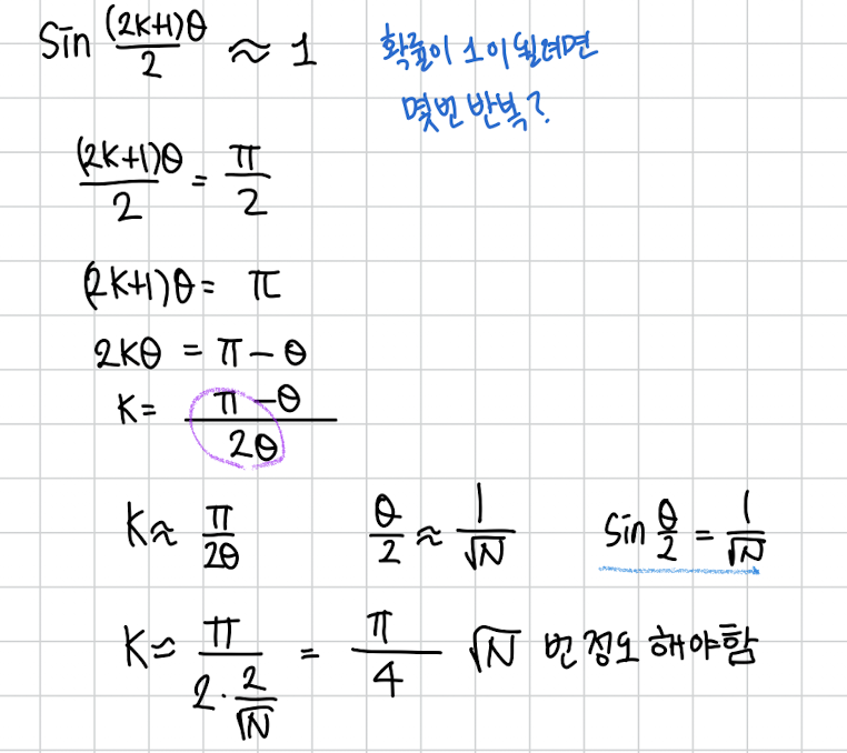 그럼 과연 몇번을 해야 될까요? 아마 sin 안에 각도가 가 되도록 하면 될겁니다. 그럼 정답이 측정될 확률이 1에 가까워질거에요.