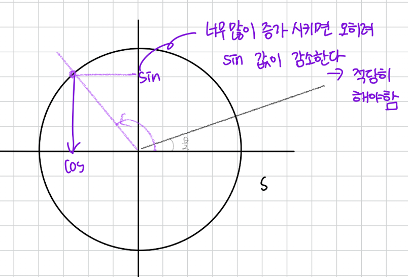 이 뜻을 삼각함수로 보자면 각도를 점점 늘려서 사인 값을 늘리는 거라고 생각할 수 있습니다.