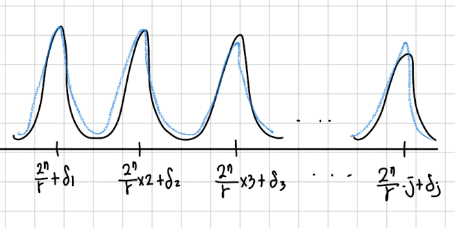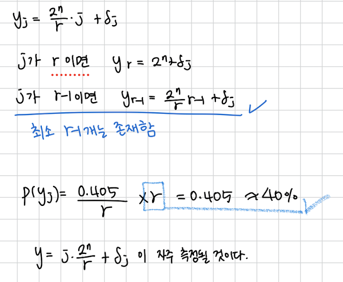 그렇단 뜻은 여러번 100번 정도 y를 측정하고 본다면 특정 부분에 y가 집중되어있을 것입니다. 그럼 그곳은 의 정수배 언저리 란 뜻입니다.