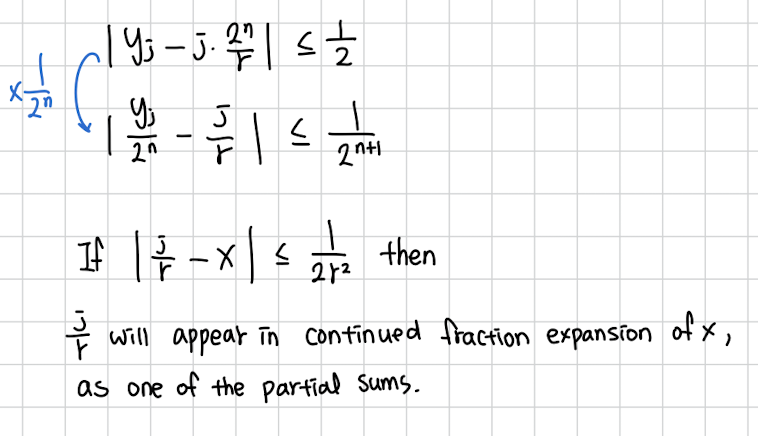 아무튼 그래서 y를 측정하고 그걸 n이 뭔지는 우리가 아니까 그걸로 나눠서 연분수 전개해서 partial sum을 하나하나 보다보면 이 등장합니다.