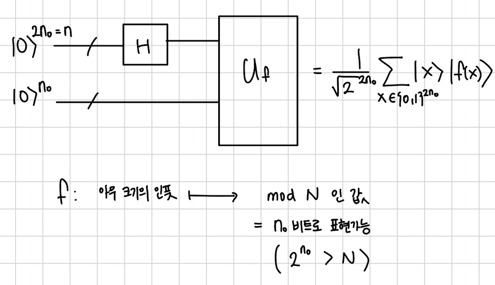 n 비트의 모든 경우에 대해서 그 함수값이 두번째 칸에 저장된 상태로 superposition이 생성됩니다.
