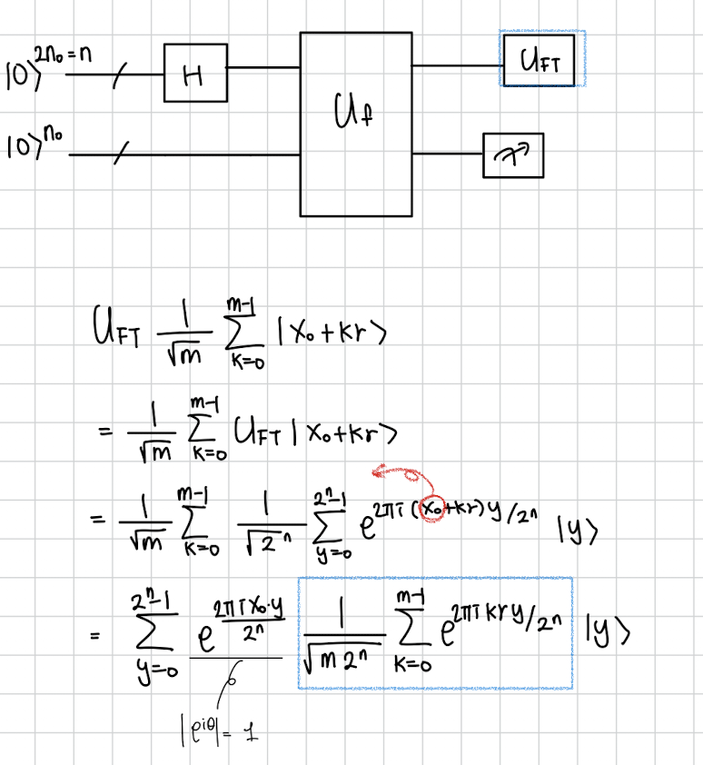 여기서 측정때마다 달라지는건 값입니다. 이 과 r을 떨어뜨릴 수만 있다면 계속 측정하면서 랜덤에 맡기지 않아도 될 것입니다. 그래서 우리의 목적은 을 앞으로 떼어내는 것이고 그걸 위해서 Quantum Fourier Transform을 사용할겁니다 .