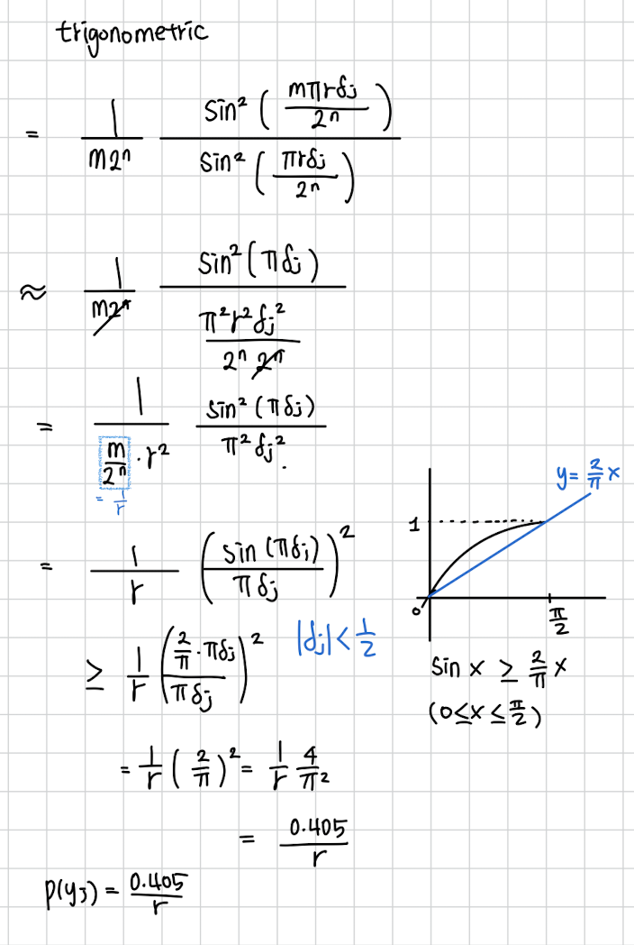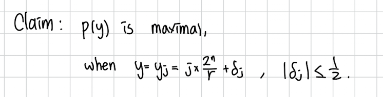 이 알고리즘의 주장은 이것입니다. 의 정수배 근처에서 제일 y의 확률이 높다는 것입니다.