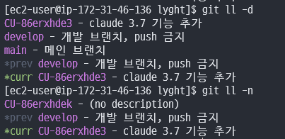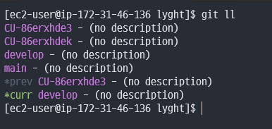 이걸 사용하여 git ll 이라는 명령어를 입력하면, 브랜치와 그 설명이 나오게 하려한다.