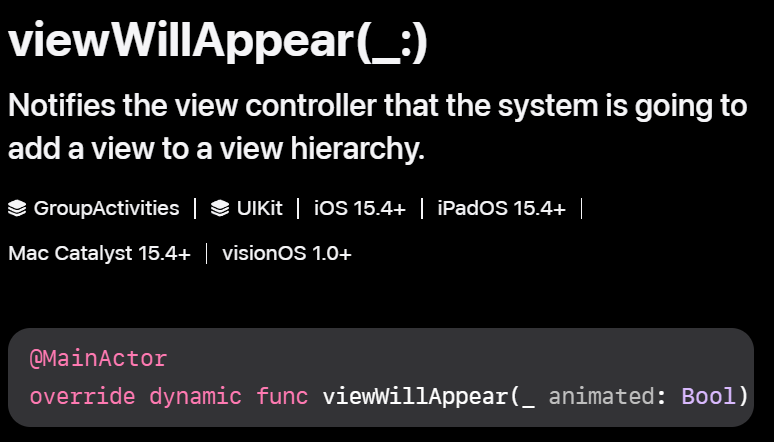 예시로 든 viewWillAppear 또한 dynamic 키워드를 적용되어 있다.