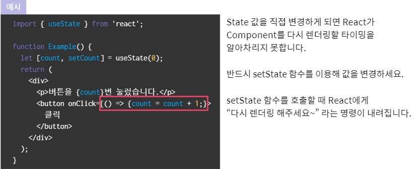 State의 값은 직접 변경하지 마라