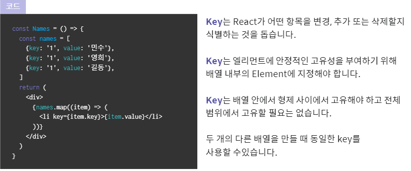 React에서만 쓰이는 새로운 Attribute(key)
