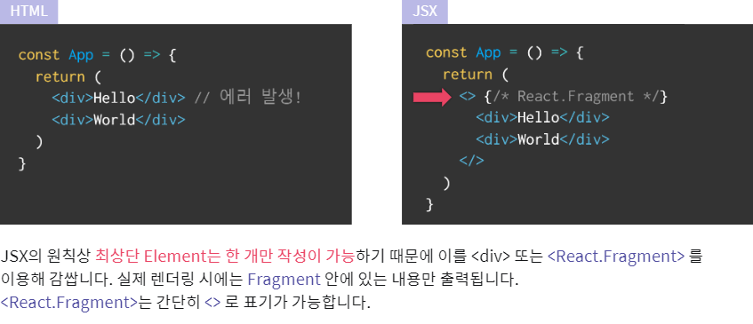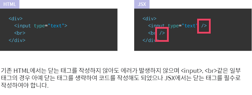 JSX의 특징/ HTML과의 차이점