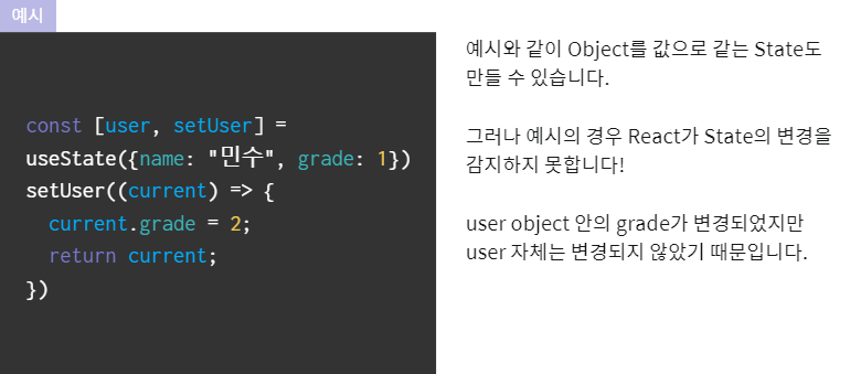 Object를 갖는 State를 만들 때 주의사항