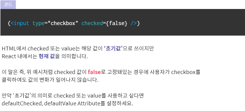 HTML과 다른 방식의 React Attribute(checked, value)