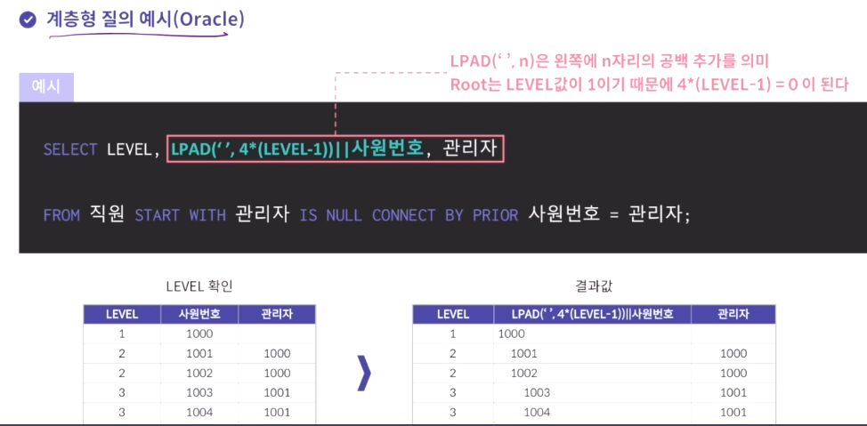 계층형 질의 예시(ORACLE)