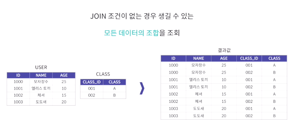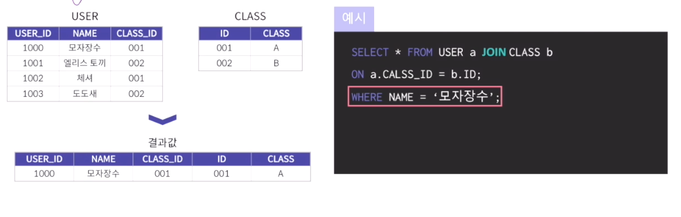 - JOIN을 활용한 쿼리에서도 WHERE문을 이용하여 조건을 걸 수 있음