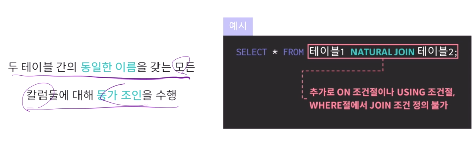 FROM절 JOIN형태 - INNER JOIN/USING/NATURAL JOIN