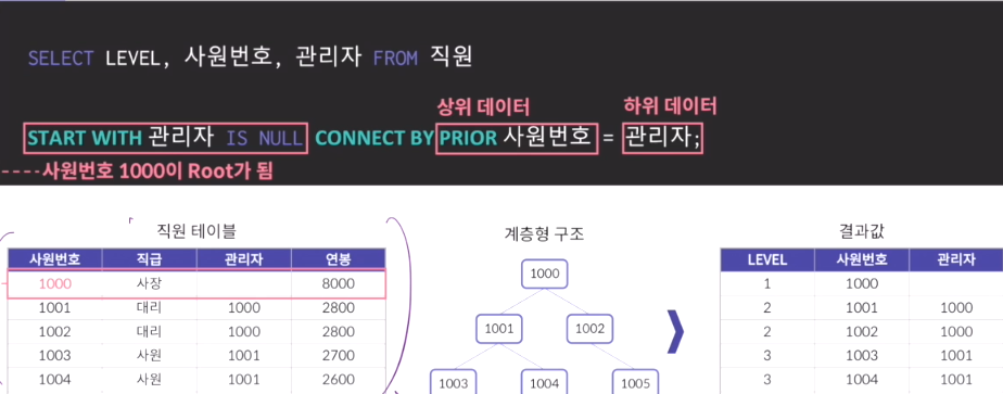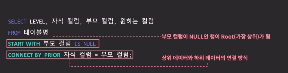 - 테이블에 계층형 데이터가 존재하는 경우 데이터를 조회하기 위해 사용하는 것