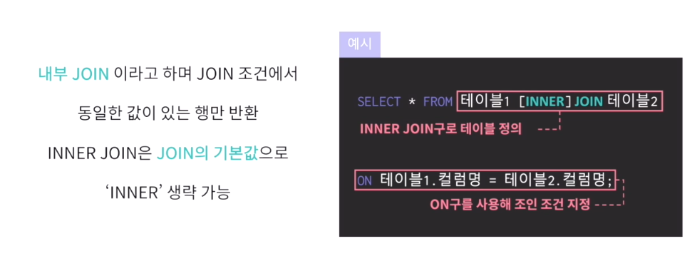 - 등가 연산자('=')를 활용한 조인을 의미