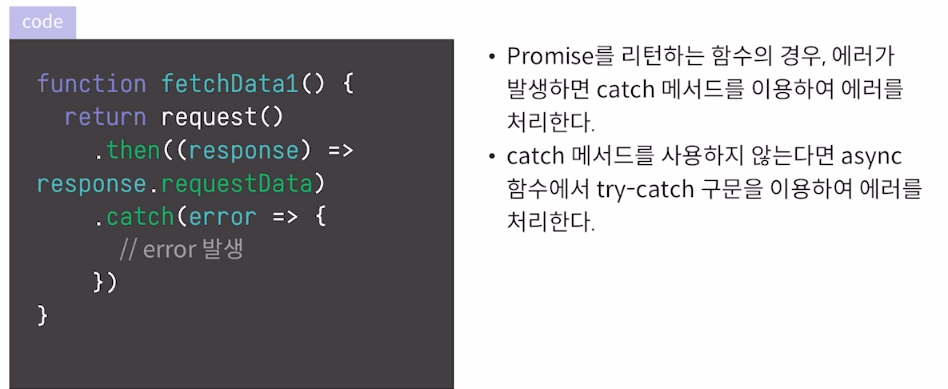 - async/await 문법으로 비동기 코드를 동기 코드처럼 간결하게 작성할 수 있다.